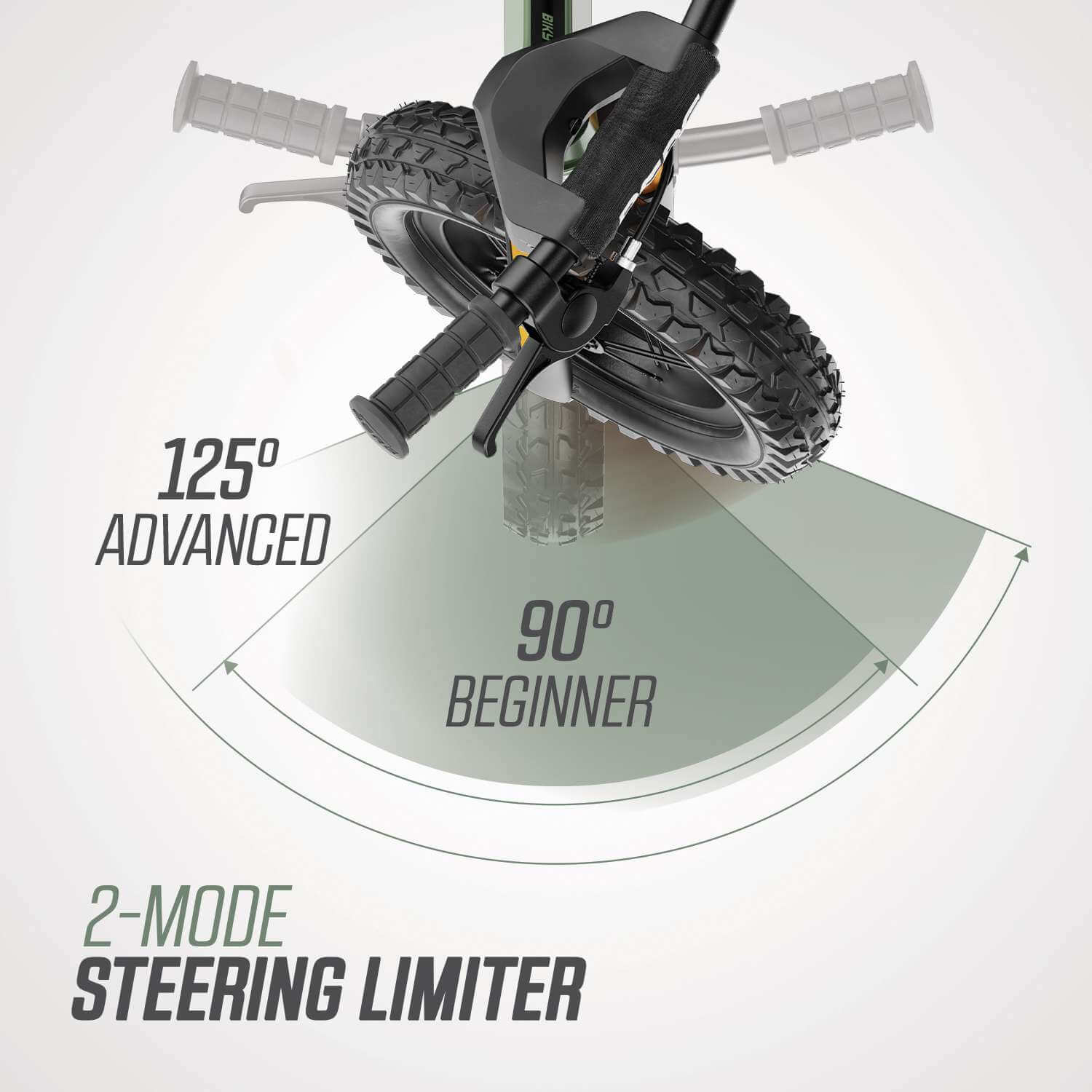From the first wobbly ride to confident cruising, the handlebar deflection limiter keeps kids safe. Beginners can start with a limited 90° steering range to prevent handlebar flips, while more confident little riders can switch to the 125° advanced mode. Padded grips and a protective handlebar pad ensure comfort and safety every time they ride.