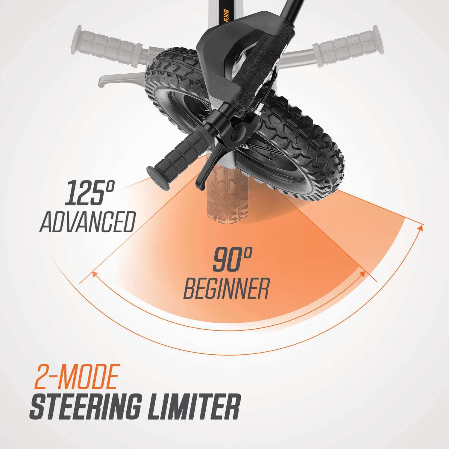 From the first wobbly ride to confident cruising, the handlebar deflection limiter keeps kids safe. Beginners can start with a limited 90° steering range to prevent handlebar flips, while more confident little riders can switch to the 125° advanced mode. Padded grips and a protective handlebar pad ensure comfort and safety every time they ride.