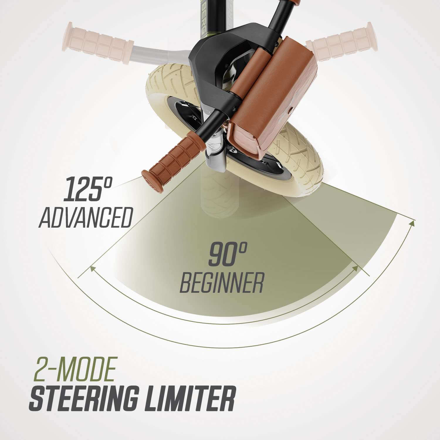 From the first wobbly ride to confident cruising, the handlebar deflection limiter keeps kids safe. Beginners can start with a limited 90° steering range to prevent handlebar flips, while more confident little riders can switch to the 125° advanced mode. Padded grips and a protective handlebar pad ensure comfort and safety every time they ride.