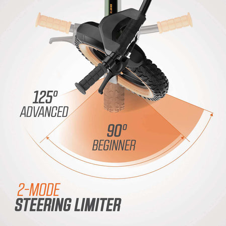 From the first wobbly ride to confident cruising, the handlebar deflection limiter keeps kids safe. Beginners can start with a limited 90° steering range to prevent handlebar flips, while more confident little riders can switch to the 125° advanced mode. Padded grips and a protective handlebar pad ensure comfort and safety every time they ride.
