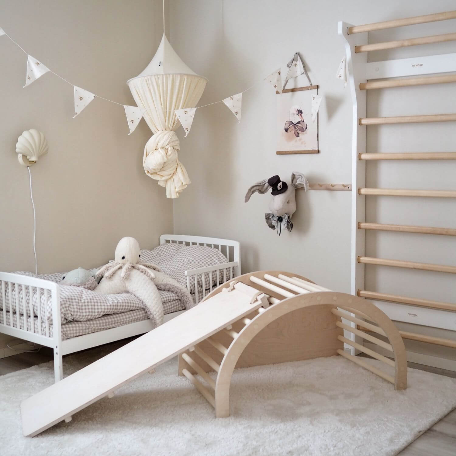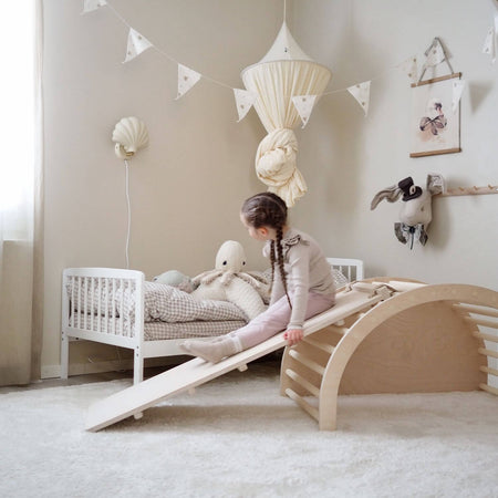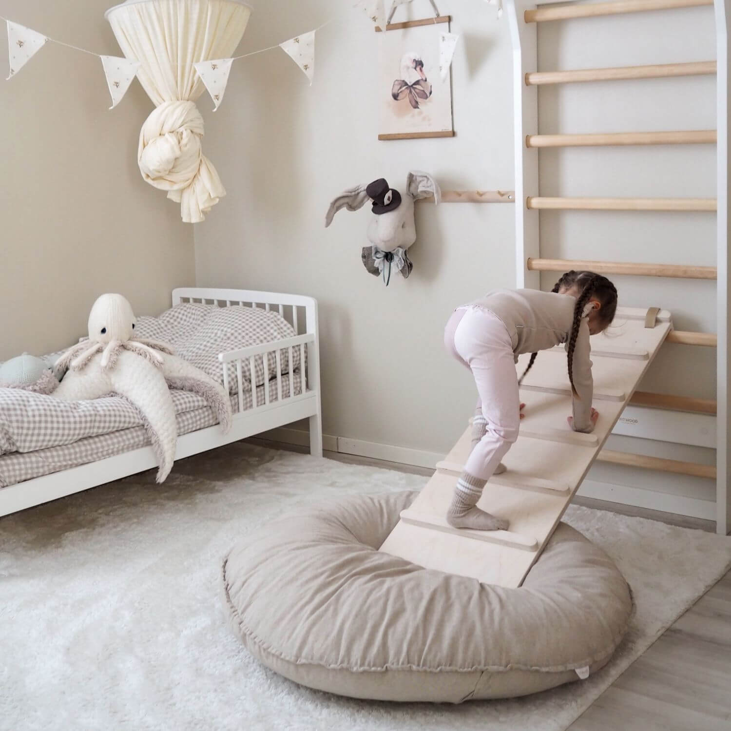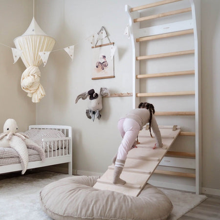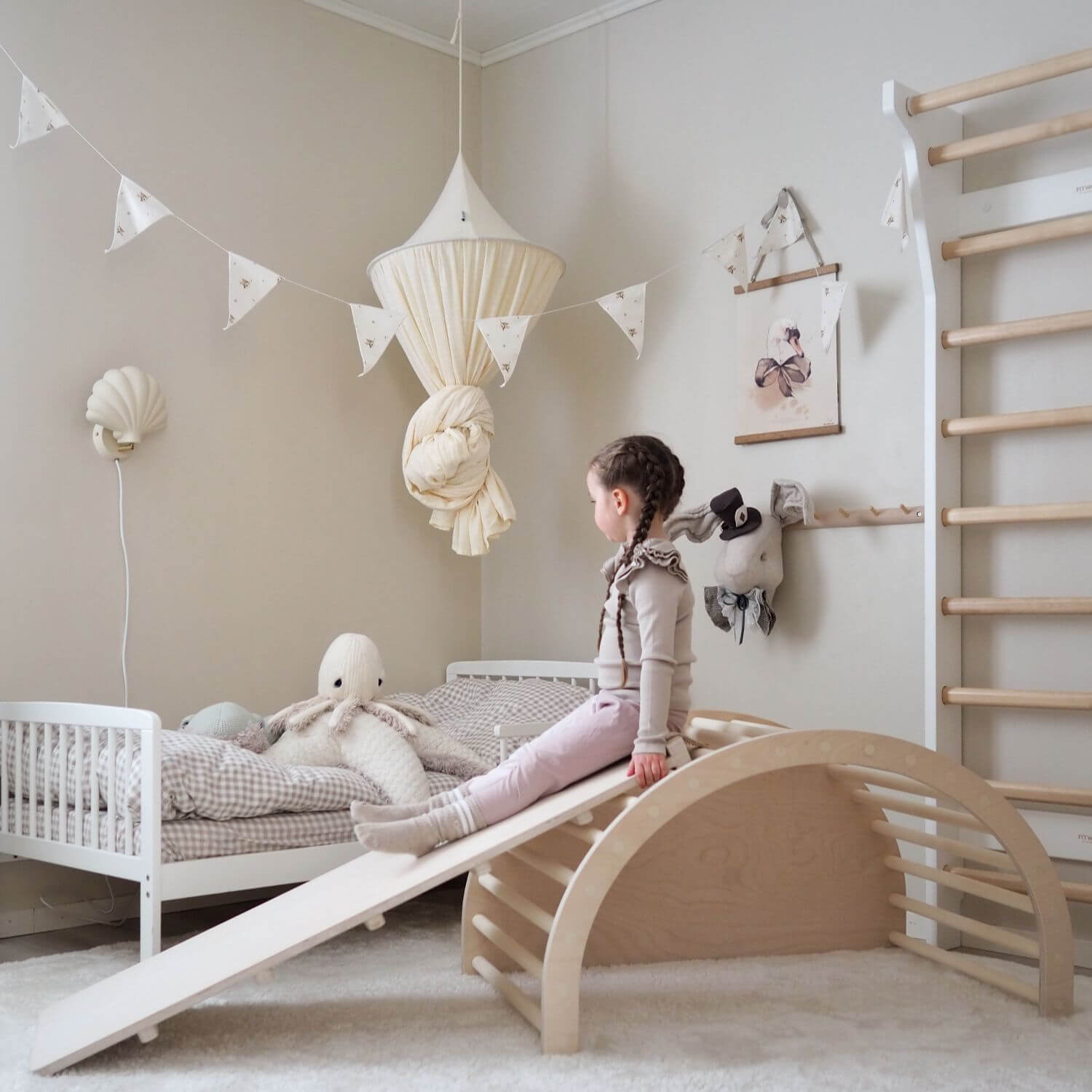 The TUOHI II slide ramp is a fun and versatile product that can be combined with both our LUOTO II climbing arch and all the different wall bars available in our product range.