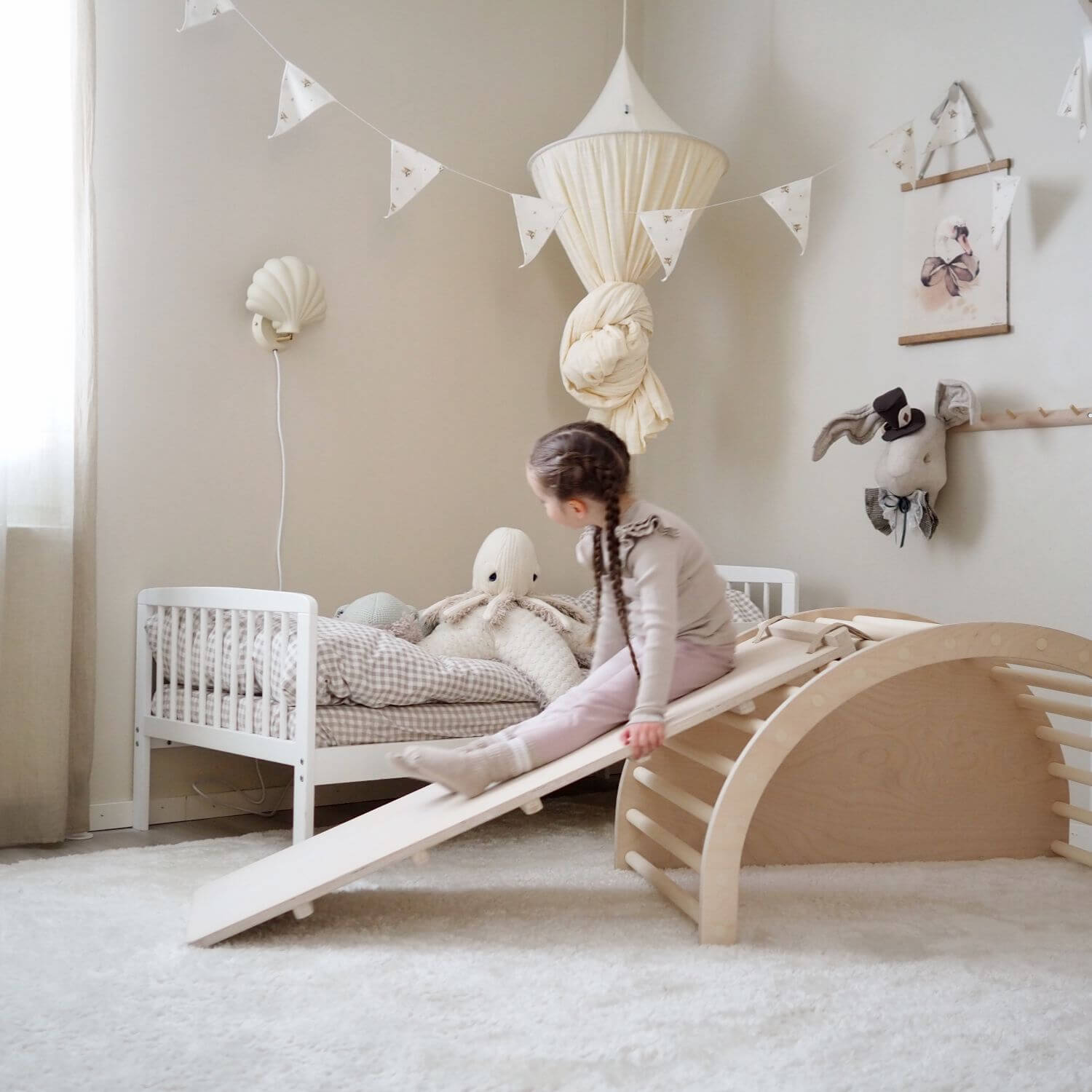 TUOHI II is the new and improved version of FitWood's popular TUOHI slide ramp. With new fastening straps, the slide ramp locks in more securely and stays in place even in the wildest playtime adventures!